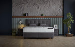 Die integrierte ModeBedd-Hybridmatratze kombiniert die Base Coil Pro Balance Spring Technology mit Soft- und Hyperschaum – für ergonomischen Halt, Druckentlastung und spürbare Entspannung nach einem langen Tag.